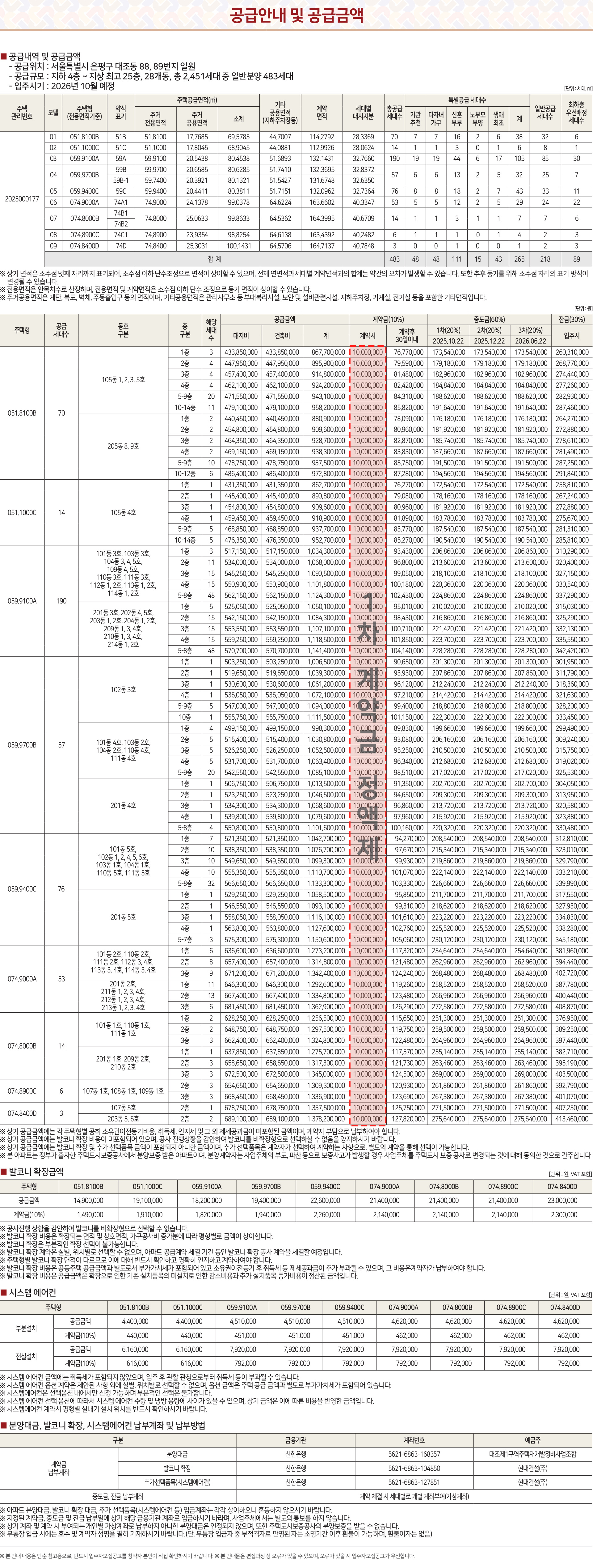 51㎡형 70세대 약 4.4억 ~ 4.9억 원 1,000만 원 무이자