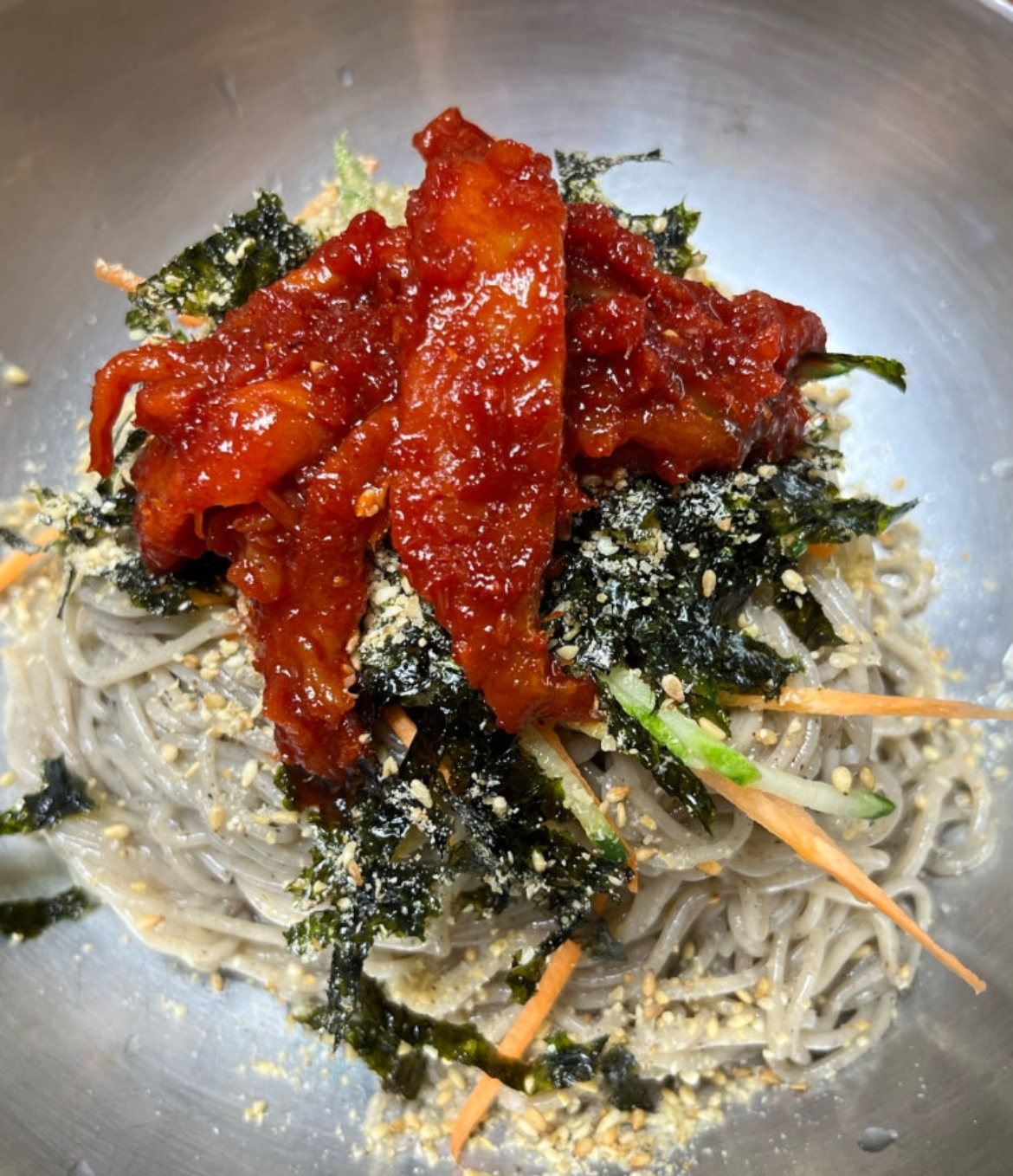 직접 뽑은 메밀면에 새콤한 양념장, 정갈한 고명까지. 기름진 음식을 먹고 난 후 입가심으로 제격입니다.