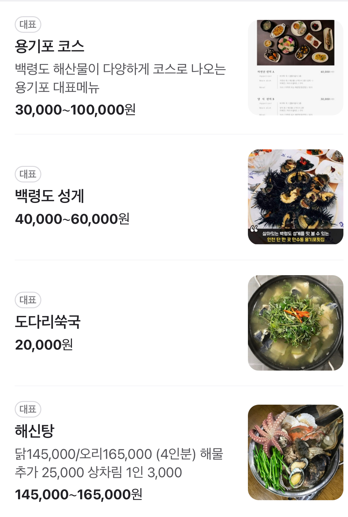 인천 백령도 직송 해산물 맛집을 소개합니다.
