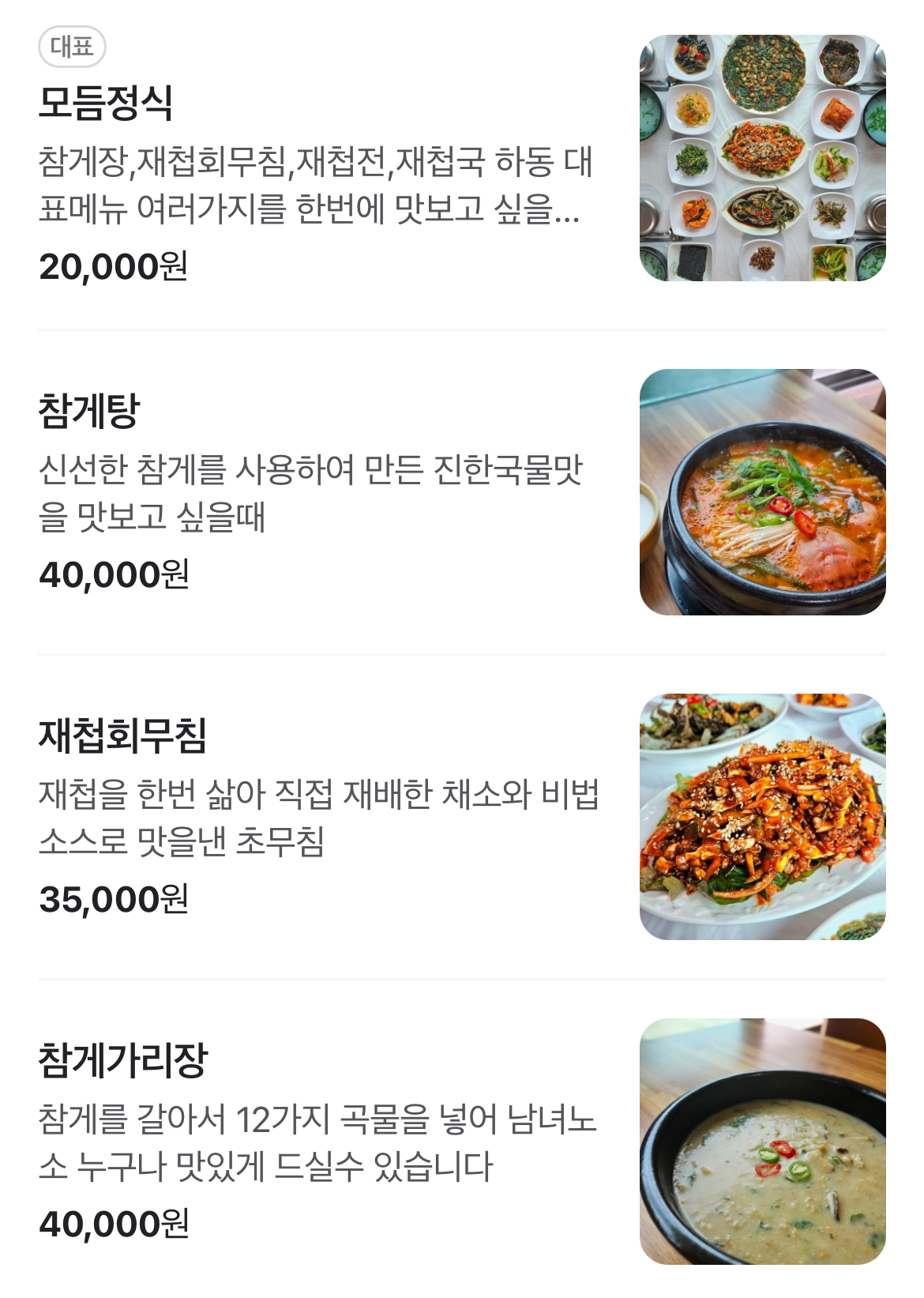 | 참게탕 | 진하고 구수한 국물 | 구수한 맛 좋아하는 분 |
